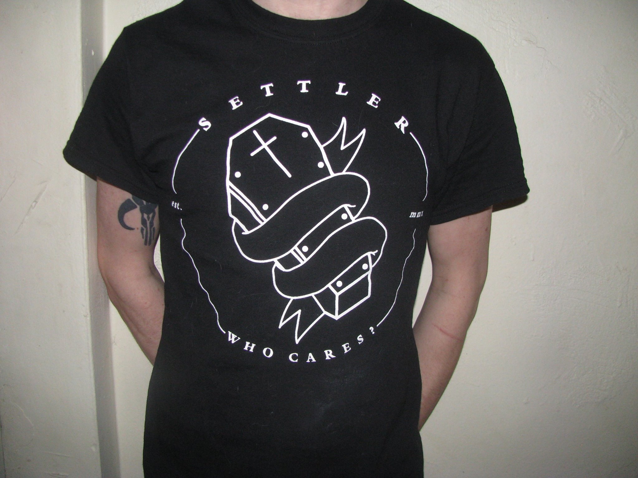 black shirt, white ink